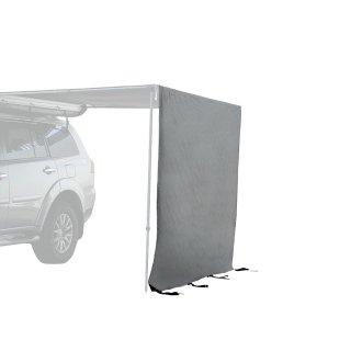 Easily attaches to the front your TENT036 - Easy-Out Awning 2.5M. Slides into the extrusion channel on the horizontal support pole of your awning and pegs securely to the ground at the desired angle. Made from the same 400d oxford/polyester ripstop, UV-resistant as the TENT036 - Easy-Out Awning 2.5M. Provides extra protection from the sun, wind and other elements. Includes 4 tent stakes to secure your Wind/Sun Break for 2.5M Awning / Front - by Front Runner
