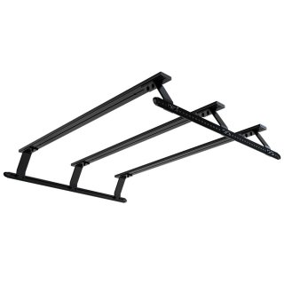A set of Pickup Bed Load Bars used to transport gear over the bed of your Ram 1500 Crew Cab. This low profile solution includes 6 Pickup Roll Top Leg Mounts, 3 1575mm Load Bars, 1 set of Load Bed Tracks and fitting instructions. The Load Bars are mounted via Pickup Roll Top Load Mounts that bolt directly onto a set of Load Bed Tracks. Allows for gear to be mounted above the pickup’s load bed. The load bed retains its load-carrying ability, while the drop down door functions as usual. Uses the same strong, corrosion-free aluminum slats found in Front Runner Racks. The sliding nut t-slots allow for quick fitting and removal of accessories and equipment on both the top and bottom of the slats. Made from stainless steel and a durable, weather-resistant black powder coated aluminum.