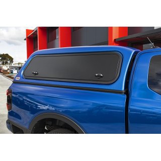 Classic CanopyUnrivalled quality, practicality and affordability.Available as a standard height roof version in smooth, painted exterior finish, customers may choose from our side sliding or side lift up window configurations which are positioned low on the canopy shell to maximise access into the cargo area.Product SpecificationSide and rear lift up windows feature keyed alike mechanical twist lock D handle and are locked and unlocked via the supplied keys.The front canopy window is a lift style to allow maximum rearward vision and easy access to clean the vehicle cabin rear glass.The rear door is a full 3D curve design, manufactured from grey tinted tempered safety glass to EC43R standards.