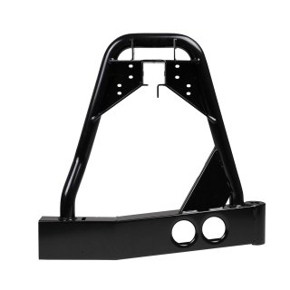 ARB REAR BAR AND WHEEL CARRIERARB's range of rear bars, incorporating wheel carriers and jerry can holders, provide additional functionality while delivering high quality vehicle protection.4WDs with the spare tyre mounted on the back door can suffer from unnecessary door assembly stress, while a spare wheel located underneath a vehicle can be difficult to access, be more prone to damage and may affect ground clearance when driving off road. Both of these mounting methods can also prove unsuitable if a larger tyre size is sought.An ARB rear bar addresses all of these issues, relocating the spare tyre onto the bumper assembly via a swing out carrier.KEY FEATURES\tWheel or jerry can carriers can be optioned on either side of the rear bar on most vehicles\tA single carrier can be fitted, or the rear bar can be installed without any carriers at all. Neat insert panels are used in this instance\tTwin 33ÔÇ? or a single 35ÔÇ? tyre can be accommodated on most vehicles\tCarriers are mounted via dual shear pivots for maximum strength\tSpare tyre is secured to the stud plate with a lock nut with the provision to fit a padlock to secure the stud plate to the carrier\tMulti fit spare wheel stud system provides flexibility for alternate rim selection\tWing sections can be removed and replaced if they sustain damage\tIncorporates heavy duty towing system, or integration with original equipment tow point on some models\tDual, laminated towing points and Off-road jacking points\tExtruded alloy step section\tSupplied in a durable powder coat finish with optional colour coding available\tProvision to mount an optional HF aerial bracket and camp light* Certain ARB rear bar models may not incorporate all of the above features