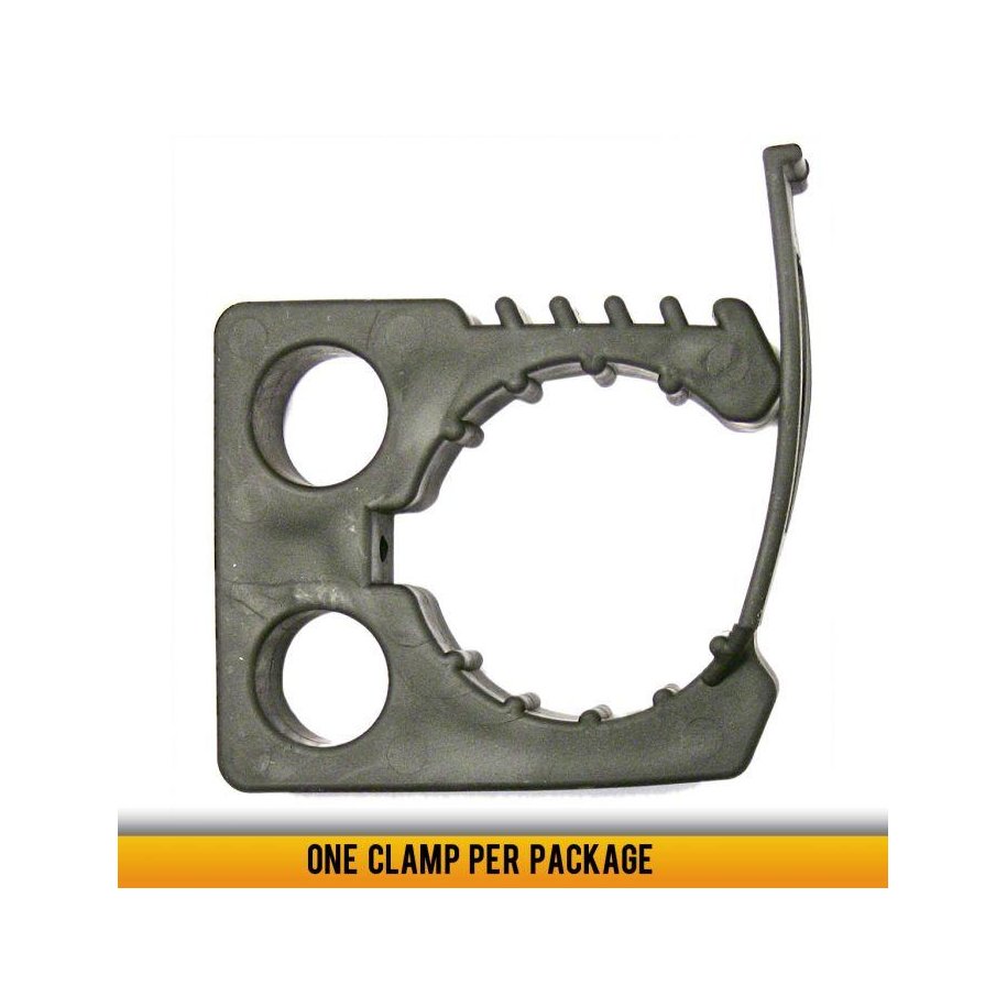 3\" QUICK FIST CLAMP \tHolds objects from 2 3\/4\" to 3 1\/4\" (70mm to 83mm) in diameter.\tEach clamp supports a safe working load of 50lbs (23 Kilos).\tMounts easily with one 1\/4\" (6mm) bolt or screw.\tMounting area: 4 1\/2ÔÇ? x 1 1\/4ÔÇ? (114mm x 32mm).One Clamp Per Package