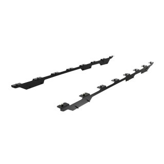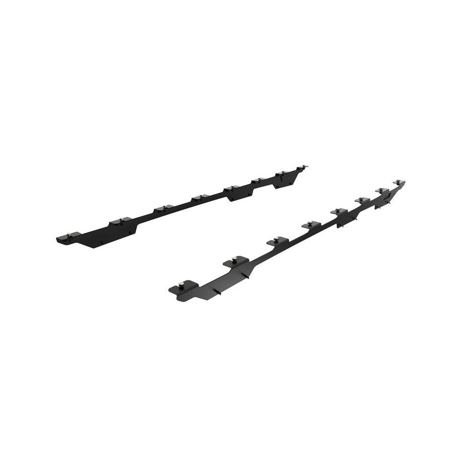 Comes in a set of (2) two. Left hand side and right hand side. These Foot Rails contain 1 opening to access a Front Runner under rack mount table (1 smaller TBRA018 or 1 larger TBRA017). No drilling or track required.