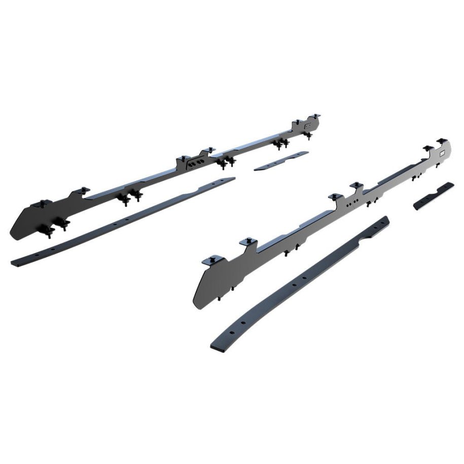 Comes in a set of (4) four, 1 pair of front foot rails and 1 pair of rear foot rails (left and right-hand side per pair). Fits to the Land Rover New Defender's existing mounting points. The OEM Tracks need to be removed if fitted. Foot rails follow the contours of the vehicle's roof line providing a sturdy base to fit the Front Runner Slimline II Roof Rack. These Foot Rails contain 2 openings to access a Front Runner under rack mount table (1 smaller prep table and 1 larger camp size table). Made of high strength steel and sealed with the same durable, weather resistant powder coating as the Front Runner Slimline II Roof Rack. Installation hardware and fitting instructions included. Note: The OEM Tracks need to be removed when fitting these Foot Rails.
