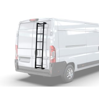 This ladder bolts to the body or to the rear barn doors of vans or utility vehicles. Surface required to secure the ladder to the vehicle is 1060mm - 1780mm / 41.7'' - 70''. The ladder has 6 steps. Length from bottom step to top step is 1460mm / 57.5''. Made with off-road tough black powder-coated high-strength steel and aluminum for maximum durability and strength. Fitment guide and installation hardware included.