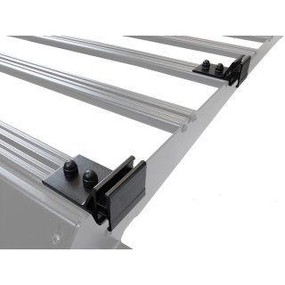 A pair of brackets that secure to the slats of your Front Runner Slimsport Rack. Mounts Front Runner side mount accessories such as: RRAC222 RRAC024 Installs in the T-slots of the Slimsport Rack and can be inversed to allow for standard or lower mount depending on roof clearance. Made from black powder coated 6063 T6 aluminum to match your rack accessories. Supplied with installation hardware and fitting instructions. Note: This product is only compatible with the Front Runner Slimsport Rack Kits.