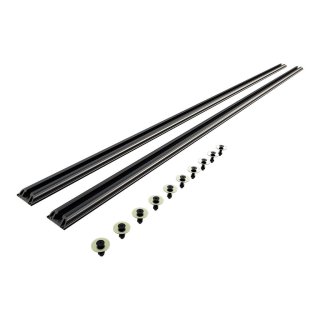 The Front Runner Tracks have been designed to accommodate a stud plate which slides into the T-slot of the track and enables the foot assembly to be secured with nyloc nuts before the roof rack bolts on to the foot. Suitable for universal fitment of a roof rack should the vehicle roof allow. Often used for trailers and canopies to mount a rack or load bars. Each track is supplied with fitted double-sided tape and a section of pre-cut rubber, which is used to protect the vehicle roof from the track. Powder coated black. Comes in pairs.