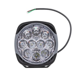 GRANDE RACER SPOT,140W, MULTI FUNCTION Activity ÔÇô High Visibility Race application speed range 110 mph ÔÇô 150 mph or faster I guessIdeal Location ÔÇô Driver POV or HigherMulti-Function ÔÇô Spot, Spot, and more Spot. But usable SpotPower ÔÇô 140 wattsOver 1 million Candela of Spot, making this light the most powerful and usable light on the market! Enough said. This light is intended for race applications trying to see the finish line from the starting line. The Supreme 150 still has programable outputs and offers an area light making this light a must on any race vehicle.Copper Circuit Board ÔÇô The most efficient and true way to maximize the huge power and cooling properties of the Grande Supreme. Paired with our thermal management software built into each of our products the NACHO copper circuit boards add another layer of extreme performance and confidence separating NACHO form the competition.Grande's Outer Body ÔÇô NACHO's signature polycarbonate exo skeleton has many valuable features and benefits. Forced Air Induction, Light engine protection, customizable, and is replaceable. The housing is engineered to maximize airflow, it channels air through the front of the light and efficiently exhausts it out the back, ensuring optimal cooling for enhanced performance. If you are hard on equipment beat the light up and know that you can replace the housing at any time to keep your light looking fresh. If you are looking for attention, the housing can be removed painted to your desire and put back on the light for that custom touch.2-N-1 Secured Grip Light Mount: Simplified Mounting ÔÇô This true universal mount for the Grande is a patented mount system that allows you to surface mount your Grande on any tab OR it allows you to remove the provided surface mount and direct mount the light to any 1.5ÔÇ? tube. NACHO's Output Control Module: User Controlled ÔÇô What's this you ask? Well, based on your activity, having the right light is crucial. The Grande features a module built into our light that allows you to program your light with multiple output settings, to your desired output or beam pattern. From High Intensity spots, to a low intensity area light. Customize your light to your off roading lifestyle.Sorcery Wand a.k.a Magnet on a Stick: ÔÇô designed to work with our Output Control Module which allows you to toggle through various light settings. The Tip 2 Chip method allows you to configure your light output by tapping on the cheesy chip icon on the side of the light with the provided sorcery wand to select up to 3 different modes. Program your light and set it to forget it with light output you need when you need it. *You can change modes anytime you would likeConstant Power: Don't let switch restrictions limit you ÔÇô Constant power lighting is the future. Save on installation cost and unnecessary harnessing items. To simplify this, relays are built into the lights allowing you to run a lower power switch to a high-power light without concern.Surface Mount Bracket: ÔÇô We designed and constructed our surface mount bracket to be made of durable corrosion resistant stainless steel and finished it with a polyester UV protected black powder coat.Covers ÔÇô The covers are engineered and designed to incorporate into the light housing, and is made out of a high strength polycarbonate to withstand a beating. The Grande comes with an Amber branded NACHO cover and a solid black ARB branded cover. Other cover options are available as accessories. Smoke, Clear, Black, and Amber are all available.Hardware: Tighten with Confidence and built for the elements ÔÇô NACHO uses chrome plated stainless steel hardware to prevent corrosion and galling. All hardware is provided to mount your light either surface or tube mounted.IP68 Waterproof & Dustproof: Built to Conquer Any Challenge ÔÇô With an IP68 rating, our NACHO lights are engineered to withstand the harshest off-road conditions. No matter how intense your adventures get, rest assured that your lights are protected against dust ingress and water submersion.J575 Vibration Rated ÔÇô When it comes to off-roading, your lights need to withstand the toughest vibrations. That's why our Grande is engineered to meet the J575 vibration rating, ensuring exceptional durability and performance on the most punishing trails.