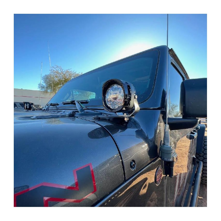 A PILLAR LIGHT MOUNTS Upgrade Your Jeep Wrangler JL/JT A Pillar with NACHO A Pillar MountsNACHO A Pillar Mounts for the Jeep Wrangler JL and JT models are crafted from durable powder-coated steel. These brackets utilize the factory mounting bosses on the cowl and window hinge, providing a sturdy foundation for your lighting setup.Designed to withstand the most extreme off-road conditions, the NACHO A Pillar Mounts feature a three-point contact system, minimizing light vibration even on the roughest terrains. Each bracket includes four black powder-coated aluminum spacers, black oxide stainless hardware, and two powder-coated steel mounts for a complete and secure installation.NOTE: This mount is not compatible with the 392, Mohave or Diesel model do to the raised cowl. DOES NOT INCLUDE LIGHTS OR HARNESS