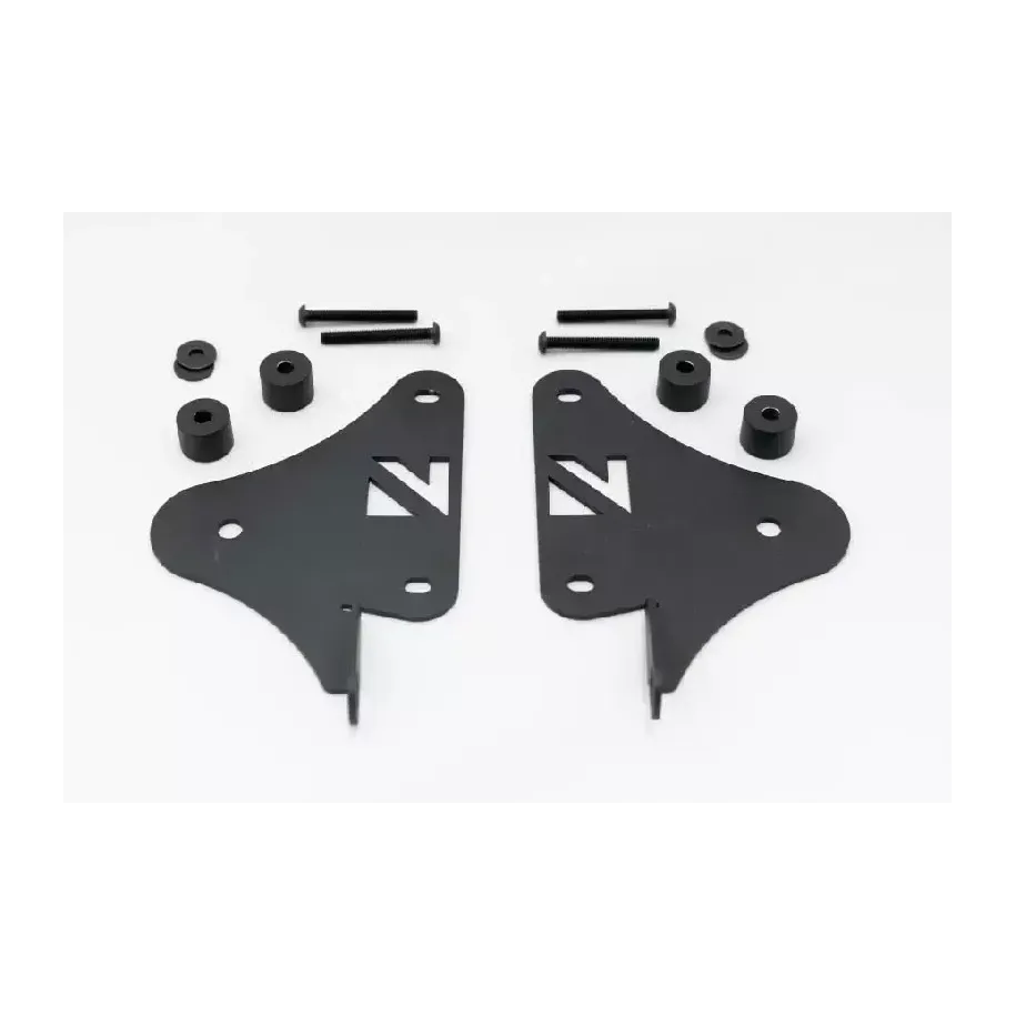 A PILLAR LIGHT MOUNTS Upgrade Your Jeep Wrangler JL/JT A Pillar with NACHO A Pillar MountsNACHO A Pillar Mounts for the Jeep Wrangler JL and JT models are crafted from durable powder-coated steel. These brackets utilize the factory mounting bosses on the cowl and window hinge, providing a sturdy foundation for your lighting setup.Designed to withstand the most extreme off-road conditions, the NACHO A Pillar Mounts feature a three-point contact system, minimizing light vibration even on the roughest terrains. Each bracket includes four black powder-coated aluminum spacers, black oxide stainless hardware, and two powder-coated steel mounts for a complete and secure installation.NOTE: This mount is not compatible with the 392, Mohave or Diesel model do to the raised cowl. DOES NOT INCLUDE LIGHTS OR HARNESS