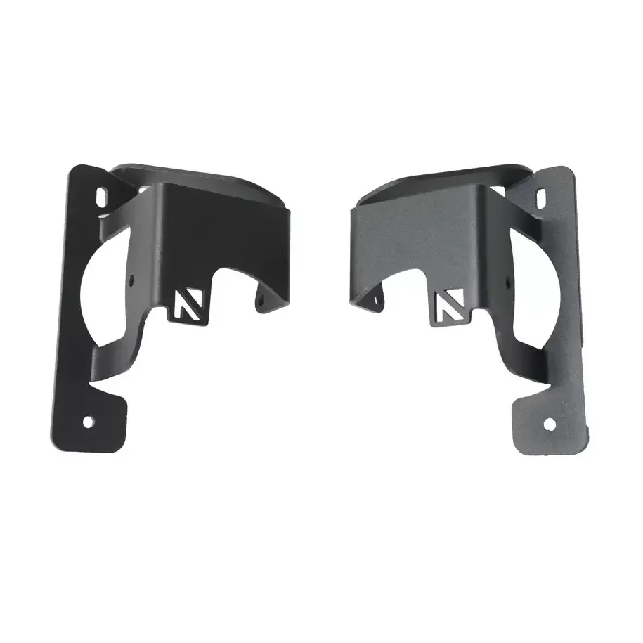 QUATRO FOG MOUNT, JL JT JEEP, 3 PIECE BUMPER. Upgrade Your Jeep Wrangler JL\/JT Fog Lights with NACHO Quatro Fog BracketsUnleash that additional lighting we all need from our factory lighting. The Jeep Wrangler JL\/JT NACHO Quatro Fog Brackets are designed to seamlessly pair with the NACHO Quatro lights, offering you enhanced lighting performance without the need for complicated modifications and keep that factory fitment.Experience a hassle-free installation with these powder coated steel mounts that utilize the factory mounting hardware and locations. Say goodbye to cutting or fabrication'simply attach the brackets to your existing fog light setup and witness a remarkable transformation.*NOTE these brackets only fit the NACHO Quatro.