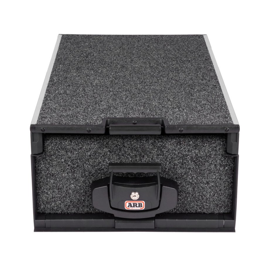 OUTBACK SOLUTIONS MODULAR ROLLER DRAWER SYSTEMSCompletely modular, the Outback Solutions range of drawer systems can be individually tailored to your needs and vehicle. Exclusive to ARB and suitable for many vehicles including wagons, utes (including extra cab), and trailers, this system can be used in non-vehicle applications such as sheds and warehouses.Three types of modules are available, in a range of sizes, resulting in more than 200 possible configurations, all backed by a two year warranty.ROLLER DRAWER WITH ROLLER FLOORThe traditional style roll out drawer with a rolling top gives you plenty of storage space and allows a fridge freezer to be easily mounted on top, enabling it to be rolled in and out as required. Available in three sizes and unlike other products on the market, this module utilises a true flat floor.KEY FEATURES\t\tEngineered for both on and off road touring with anti-rattle design\t\t\tKey lockable, push-pull slam shut latches for ease of use and maximum security\t\t\tLong lasting, UV stable commercial carpet designed to complement modern vehicle interiors\t\t\tCross folded floor ensures maximum support for items placed within each unit. Up to a Maximum of 150Kg per drawer, 300kg combined\t\t\tFully Sealed, Dust and water resistant bearings for superior longevity working in harsh environments\t\t\tOptional vehicle specific side floor kits with easy latches completes installation and provides additional storage areas within the cabin or tray\t\t\tWater resistant bonded marine ply, sourced from sustainable forests, is reinforced with steel for superior strength\t\t\tFolded stainless steel bearing runners for ultra-smooth drawer and slide operation\t\t\tSelf-locking anti roll back system locks into place at full extension, this holds the drawer from rolling closed even on inclines\t\t\tModular units allow greater flexibility if needs change in the future\t\t\tClass leading deep drawers with internal heights up to 250mm for greater packing potential\t
