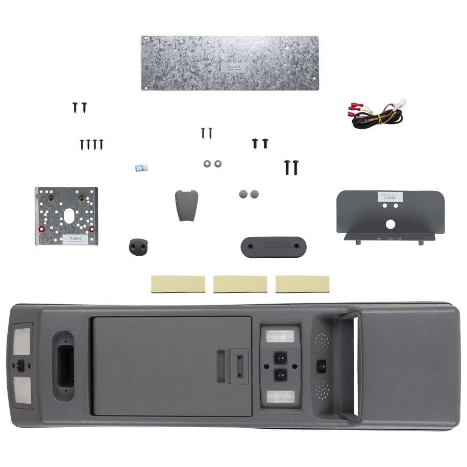 ROOF CONSOLESThe \"4WD Interiors\" Roof Console was awarded 4x4 Australia Magazines \"Best 4x4 Aftermarket Product Under $900\" for the year 2000 and pays testimony to the amount of design work, features and benefits this Console exhibits. \"4WD Interiors\" Roof Consoles: Made to look a part of the vehicle-not apart from it! FeaturesFront Interior/Reading LightsWhen doors are shut switches operate lights independently as reading lights. When doors are opened both lights operate as interior lightsLined Storage Locker BoxLined storage locker box stops contents stored inside from rattling and possible damage against sides of locker box.Microphone Cable HolderMicrophone cable holder is supplied to keep radio cable neat and tidy and up out of the drivers view.DIN (Standard Size) Radio InsertDIN size radio surround/storage tray is incorporated in console.Optional Inserts For Smaller RadiosInserts for smaller radios are available (order with console).Bluetooth Speaker HolesBluetooth speaker holes are incorporated in the front of the console allowing clear speaking and hearing.