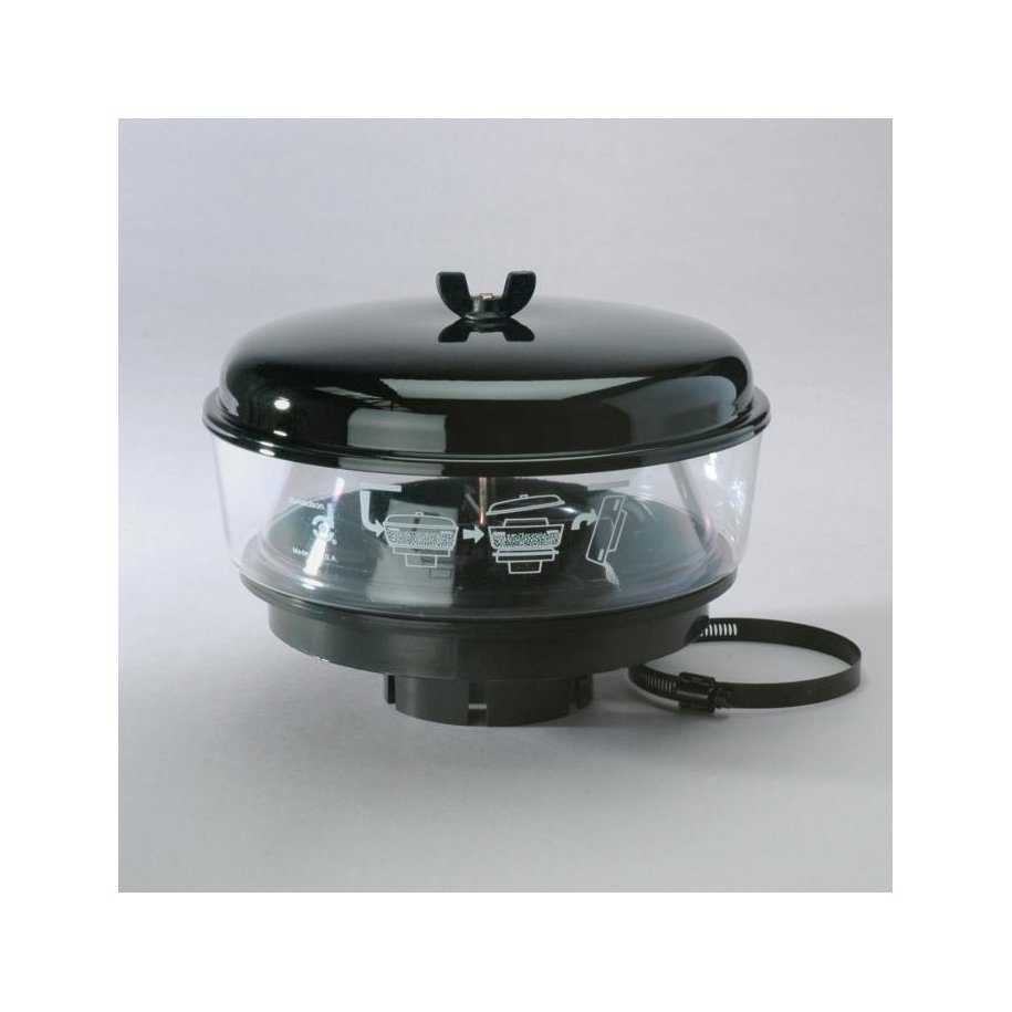 PRE CLEANER, 10 INCH DIAMETER 3.3/4 INCH INLETFull-View pre-cleaners help extend primary filter life by removing contamination before it reaches the filter. FEATURES: • Centrifugal force in bowl separates up to 75% of incoming dust before it enters an engine air intake system.• The Full-View pre-cleaner is cost effective, and easy to use.• Full-View plastic bowl lets operator easily see when service is needed.• One-bolt cover retention for easy service.