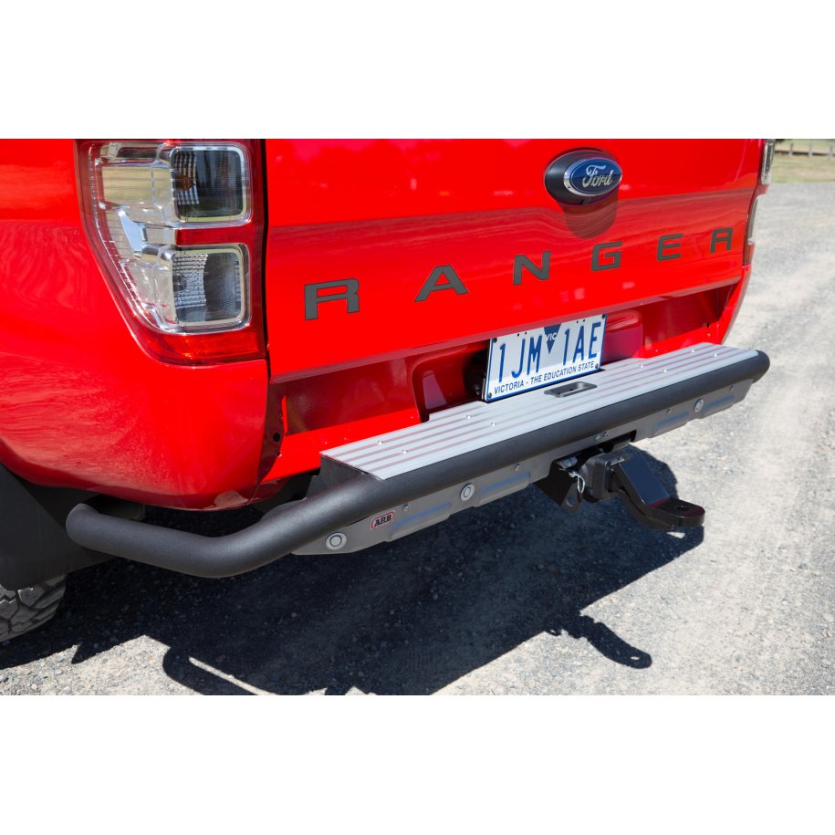 Summit Raw Rear Step Tow Bar Based on the Summit RSTB but stripped back, the Summit Raw rear step tow bar has a redesigned wing tube that provides protection to the lower section of the tub. \tMultiple chassis mounting points designed for optimum strength and rigidity.\tIntegrated heavy duty towing system features a Class 4 50mm hitch receiver that tows up to the vehicle's rated towing capacity.\tAn anodised tread panel provides grip for safe access to the vehicle tub or roof.\tIntegrated numberplate light (model dependent).\tProtected recessed mount trailer plug wiring, an ARB air compressor outlet, an ARB trailer camera wiring connection and a 50-amp Anderson plug.