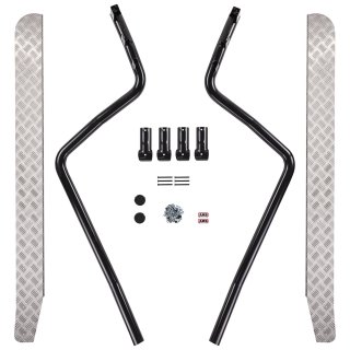 DELUXE FRONT SIDE RAIL SECTIONARB's deluxe range of side protection products will provide added protection for your vehicle from obstacles small and large.Manufactured for fitting to Deluxe bull bars:\thigh strength 47.6mm steel tube, mandrel bent\tbolt-on bar clamp, three-bolt steel clamshell type\tlaser profile aluminium tread platesThe front side rail section is one part of a two part system. The front side rail suits the matching side step.Note: this front side rail section comes complete with the side step tread plates.