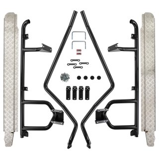 DELUXE SIDE RAIL & STEPDesigned and manufactured to ensure compatibility with side airbags and modern vehicle safety systems, ARB's deluxe range of side protection products will provide added protection for your vehicle from obstacles small and large, whilst the steps provide easier access to your vehicle.Superbly engineered bolt-on chassis mounting systems distinguish ARB side protection gear from the standard steps commonly fitted to 4WDs. Manufactured for fitting to Deluxe bull bars:high strength 47.6mm steel tube, mandrel bentbolt-on chassis bracketsbolt-on bar clamp, three-bolt steel clamshell typealloy tread plateThis side step and side rail is a complete set.