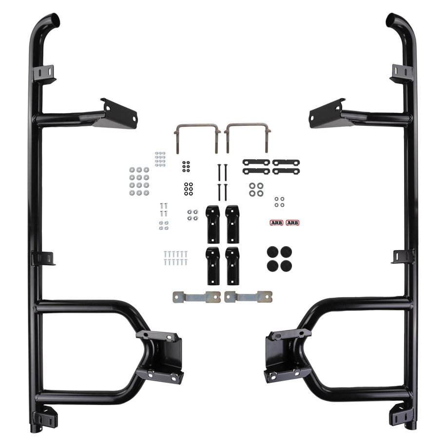 DELUXE SIDE RAIL & STEPDesigned and manufactured to ensure compatibility with side airbags and modern vehicle safety systems, ARB's deluxe range of side protection products will provide added protection for your vehicle from obstacles small and large, whilst the steps provide easier access to your vehicle.Superbly engineered bolt-on chassis mounting systems distinguish ARB side protection gear from the standard steps commonly fitted to 4WDs. Manufactured for fitting to Deluxe bull bars:high strength 47.6mm steel tube, mandrel bentbolt-on chassis bracketsbolt-on bar clamp, three-bolt steel clamshell typealloy tread plateThis side step and side rail is a complete set.