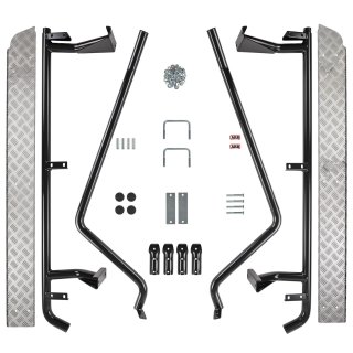 DELUXE SIDE RAIL & STEPDesigned and manufactured to ensure compatibility with side airbags and modern vehicle safety systems, ARB's deluxe range of side protection products will provide added protection for your vehicle from obstacles small and large, whilst the steps provide easier access to your vehicle.Superbly engineered bolt-on chassis mounting systems distinguish ARB side protection gear from the standard steps commonly fitted to 4WDs. Manufactured for fitting to Deluxe bull bars:high strength 47.6mm steel tube, mandrel bentbolt-on chassis bracketsbolt-on bar clamp, three-bolt steel clamshell typealloy tread plateThis side step and side rail is a complete set.