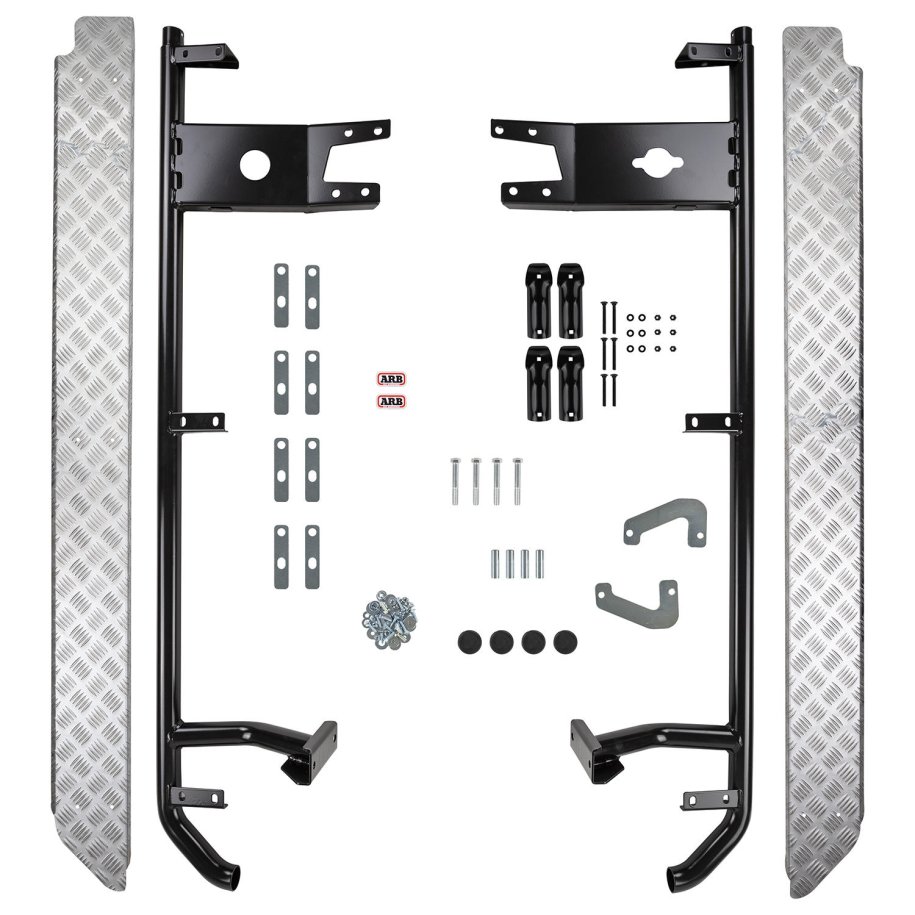 DELUXE SIDE STEP SECTIONThe superbly engineered Deluxe chassis mounting systems distinguish ARB side protection gear from the standard steps commonly fitted to 4WDs.steel tubing, high strength 47.6mm mandrel bentbolt-on chassis bracketslaser profile aluminium tread platesThe side step section is one part of a two part system. The side step suits the matching side step return or front side rail.Note: this side step section comes complete with the side step tread plates.