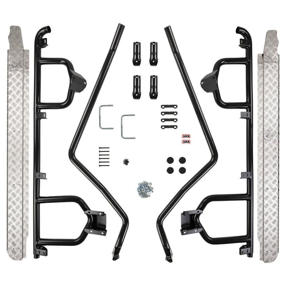 DELUXE SIDE RAIL & STEPDesigned and manufactured to ensure compatibility with side airbags and modern vehicle safety systems, ARB's deluxe range of side protection products will provide added protection for your vehicle from obstacles small and large, whilst the steps provide easier access to your vehicle.Superbly engineered bolt-on chassis mounting systems distinguish ARB side protection gear from the standard steps commonly fitted to 4WDs. Manufactured for fitting to Deluxe bull bars:high strength 47.6mm steel tube, mandrel bentbolt-on chassis bracketsbolt-on bar clamp, three-bolt steel clamshell typealloy tread plateThis side step and side rail is a complete set.