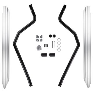 SUMMIT SIDE RAILThe Summit side protection range encompasses the very best in design and vehicle protection. Built for four wheel drives, Summit side rails & protection steps defend your vehicle's quarter panels, doors and sills from expensive damage that can be encountered when off road.\tall new engineered attachment system, connects the side rail to the bull bar securely\ta tough nylon cover sleeve provides a modern integrated look\tlarger steel tubing, manufactured from high strength 60.3mm tube\textruded & anodised aluminium tread plate, laser cut profileThe side rail section is one part of a two part system. The side rail suits the matching side step.Note: the side rail comes complete with the side step tread plates.