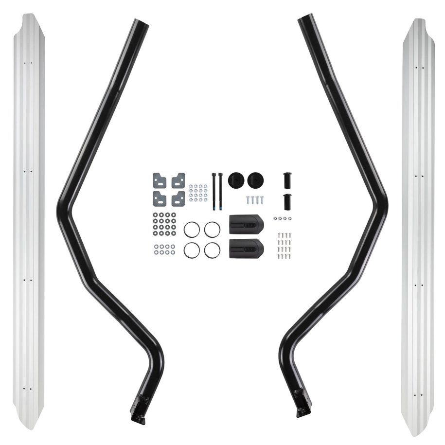 SUMMIT SIDE RAILThe Summit side protection range encompasses the very best in design and vehicle protection. Built for four wheel drives, Summit side rails & protection steps defend your vehicle's quarter panels, doors and sills from expensive damage that can be encountered when off road.all new engineered attachment system, connects the side rail to the bull bar securelya tough nylon cover sleeve provides a modern integrated looklarger steel tubing, manufactured from high strength 60.3mm tubeextruded & anodised aluminium tread plate, laser cut profileThe side rail section is one part of a two part system. The side rail suits the matching side step.Note: the side rail comes complete with the side step tread plates.