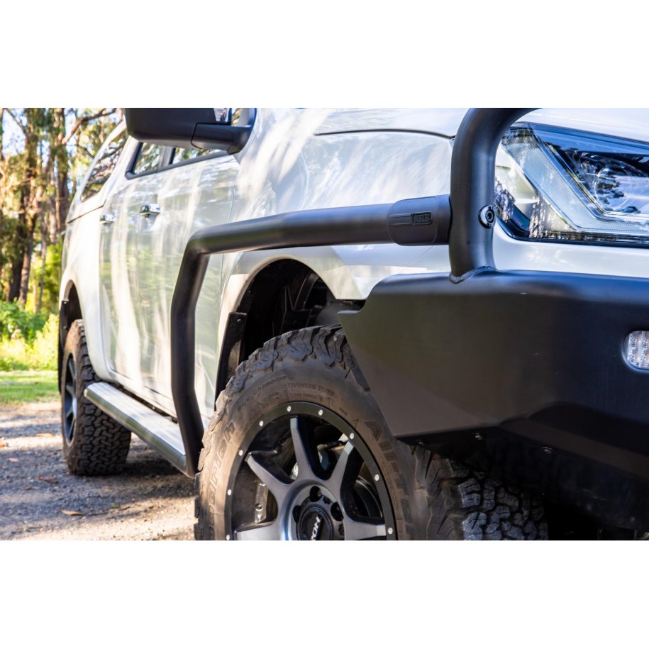 SUMMIT SIDE RAILThe Summit side protection range encompasses the very best in design and vehicle protection. Built for four wheel drives, Summit side rails & protection steps defend your vehicle's quarter panels, doors and sills from expensive damage that can be encountered when off road.\tall new engineered attachment system, connects the side rail to the bull bar securely\ta tough nylon cover sleeve provides a modern integrated look\tlarger steel tubing, manufactured from high strength 60.3mm tube\textruded & anodised aluminium tread plate, laser cut profileThe side rail section is one part of a two part system. The side rail suits the matching side step.Note: the side rail comes complete with the side step tread plates.