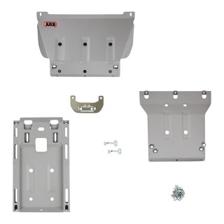 ARB UNDER VEHICLE PROTECTIONThe underbody of your 4WD is one of the areas most susceptible to damage when travelling off road. Whilst most factory protection is sufficient for protecting your vehicle from stone damage, a more robust solution is required to increase protection from rocks, stumps and ruts encountered in more challenging terrain.ARB offers vehicle specific Under Vehicle Protection sets to minimise the risk of damage to most vital components of your vehicle drivetrain.KEY FEATURESARB's under vehicle protection systems are specifically designed for each vehicle and engineered to provide a shield for vulnerable under body components such as the steering, sump, transmission and transfer case.Pressed and folded 3mm laser cut steel provides more strength than folded steel alone and allows optimum strength to weight ratioSecurely bolted to the vehicle's chassis providing outstanding structural integrityAll steel components are zinc plated and powder coated in a silver textured finishRecessed mounting bolts are protected and easy to remove for vehicle servicing.