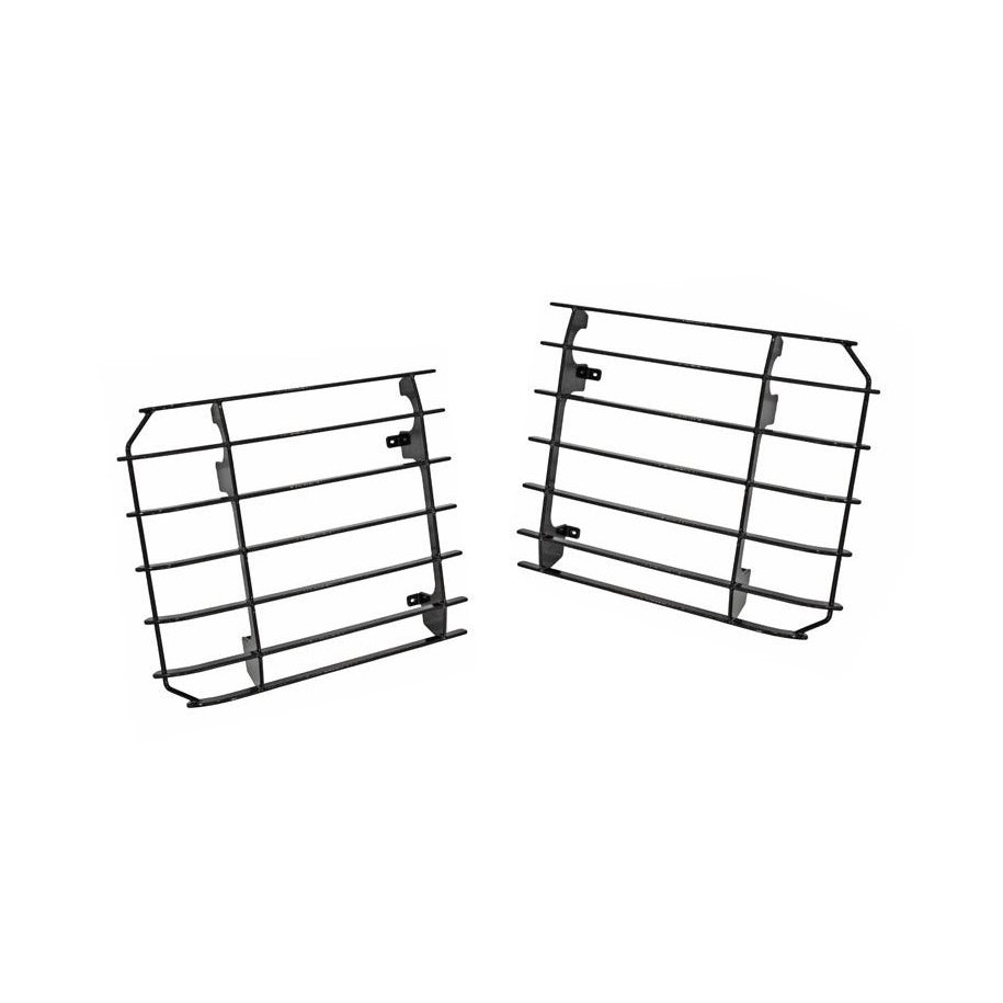 Keep your vehicle's headlights protected from damage with these tough, plastic coated, headlight protectors. Made out of high strength steel. Polyethylene plastic coated for protection against the elements. Mounts to existing mounting points on your Land Rover Defender and uses the original nuts and bolts. Designed specifically for your Land Rover Defender.