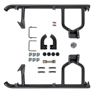 SUMMIT SIDE PROTECTION STEPSThe Summit side protection range encompasses the very best in design and vehicle protection. Built for four wheel drives, Summit side protection steps defend your vehicle's doors and sills from expensive damage that can be encountered when off road. FEATURES:\tlarger steel tubing, manufactured from high strength 60.3mm tube\tbolt on chassis brackets\tlaser profiled aluminium extrusion tread plates\treturn sectionThe side protection step is a complete step system without front rail.