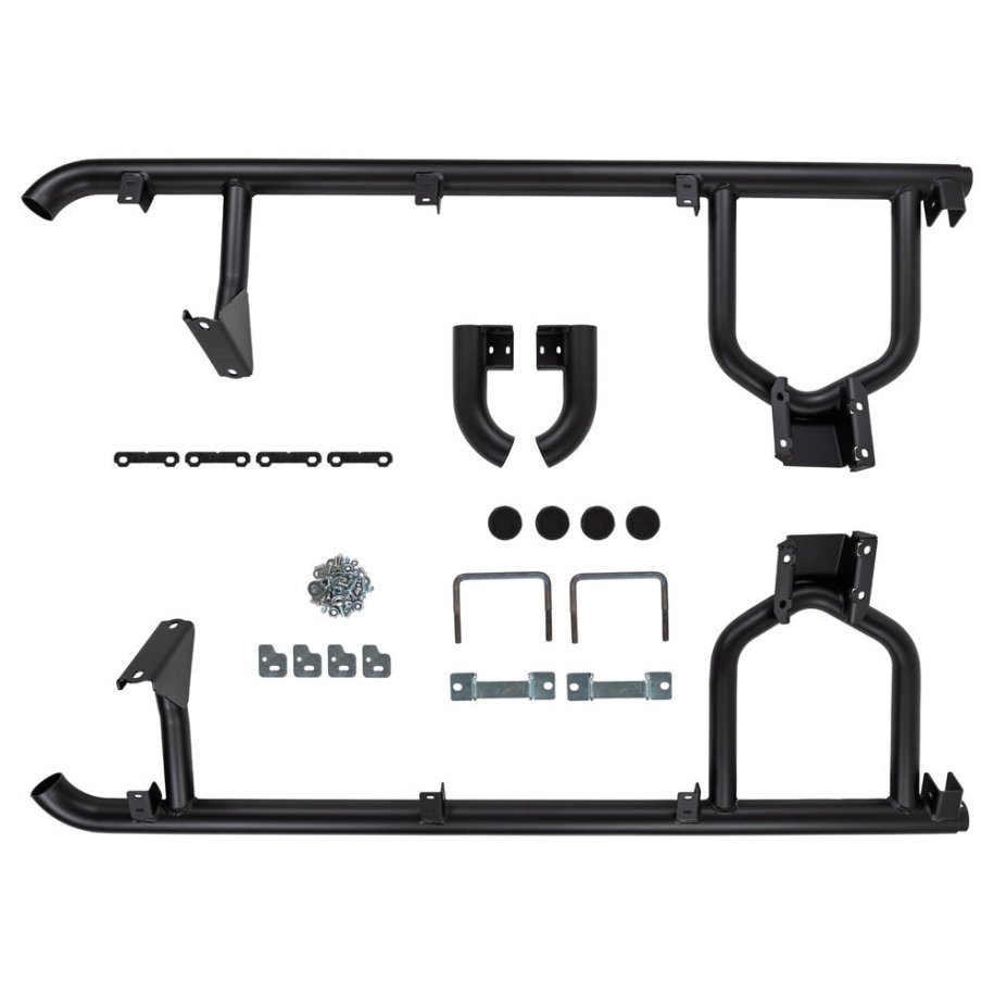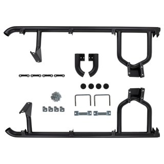 SUMMIT SIDE PROTECTION STEPSThe Summit side protection range encompasses the very best in design and vehicle protection. Built for four wheel drives, Summit side protection steps defend your vehicle's doors and sills from expensive damage that can be encountered when off road.FEATURES:\tlarger steel tubing, manufactured from high strength 60.3mm tube\tbolt on chassis brackets\tlaser profiled aluminium extrusion tread plates\treturn sectionThe side protection step is a complete step system without front rail.