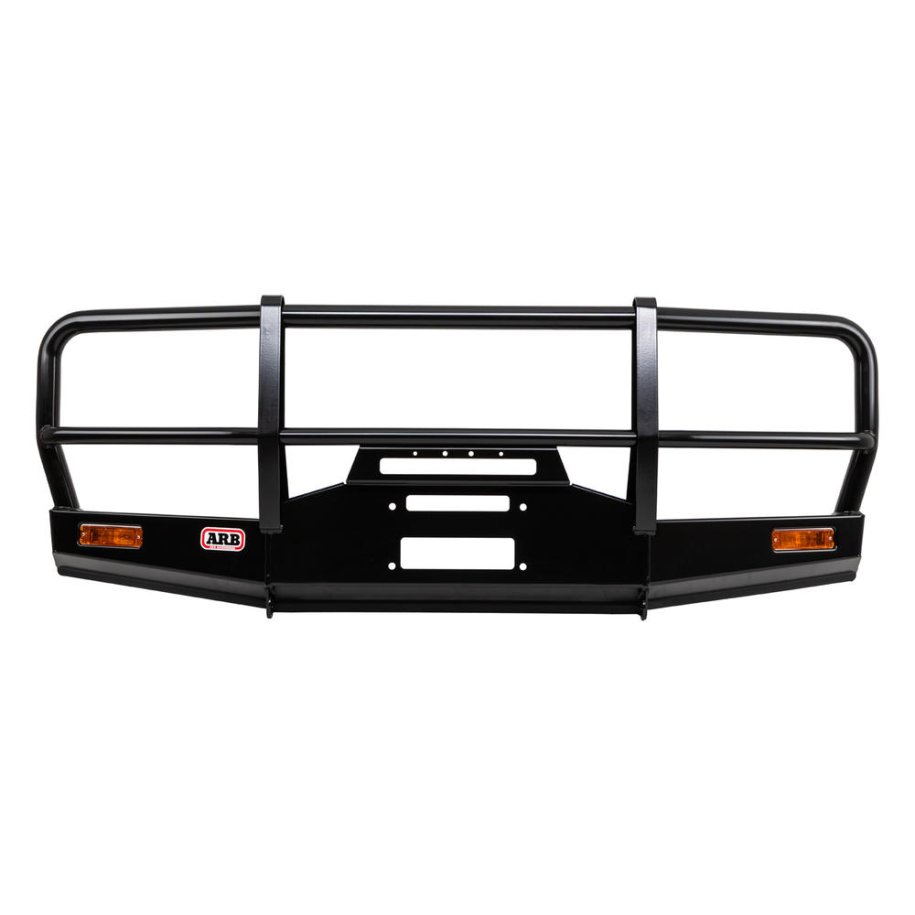 Commercial Bull BarTHE AUSSIE WORKHORSE SUITABLE FOR• Onsite work• Fleet and government vehicles• Tradies• New and older model 4WDs• Budget-conscious owners PRODUCT SPECIFICATION • Recessed indicators: For protection against branches and road debris.• Steel tube: 76.1mm steel centre frame tube and 60.3mm outer frame tube for added strength.• Aerial brackets: Some ARB Commercial bull bars incorporate aerial brackets welded behind the top cross tube.• Off road jacking points: Some Commercial bull bars feature off road jacking points, allowing a jack to be attached directly to the bar.