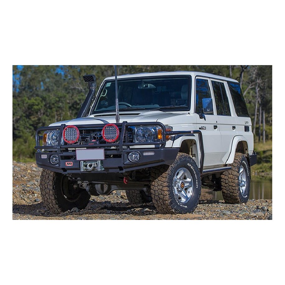 ARB DELUXE BULL BAR ARB's deluxe bull bar selection is our most extensive, with bull bar and winch bar options available for most models.Loaded with features aimed at making remote area travel safer, whilst providing a solid base on which to add other touring essentials such as driving lights, winches and CB antennas, no other bull bar offers the same degree of vehicle integration, protection and functionality.Features you can expect to find throughout the deluxe bull bar range include all steel construction, split pan design to facilitate airflow, fully engineered mounting systems and the ARB pioneered multi-fold upswept and tapered wing design.Product Features: • Recessed indicators: For protection against branches and road debris.