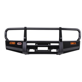 ARB DELUXE BULL BARARB's deluxe bull bar selection is our most extensive, with bull bar and winch bar options available for most models.Loaded with features aimed at making remote area travel safer, whilst providing a solid base on which to add other touring essentials such as driving lights, winches and CB antennas, no other bull bar offers the same degree of vehicle integration, protection and functionality.Features you can expect to find throughout the deluxe bull bar range include all steel construction, split pan design to facilitate airflow, fully engineered mounting systems and the ARB pioneered multi-fold upswept and tapered wing design.Product Features:• Winch compatible: The ARB Deluxe bull bar features the option of fitting a winch, and is designed and tested to endure and exceed loads increased by the use of a snatch block.• Recessed indicators: For protection against branches and road debris.• Steel uprights: The key to its strength, steel uprights attached to the mounting system provide maximum support and strike       protection.• Driving light provision: Securely mounting driving lights prevents problems such as excessive movement, a vibrating beam       pattern, premature bulb failure and eventual fatiguing of the light bodies.• Aerial brackets: The vast majority of ARB Deluxe bull bars incorporate two aerial brackets welded behind the top cross tube.    Custom-fit, clamp-on brackets are also available for additional antenna mounting.• Split pan design: Enhances the strength of the bar, while providing the radiator and engine with increased airflow.• Wing design: The ARB design provides greater strength and maintains an optimum approach angle.• Off road jacking points: Allows for the use of an off road jack for effective recovery.• Mounting system: Specifically engineered to spread impact and winching loads evenly over the vehicle's chassis. This       ensures the bull bar functions properly in extreme conditions.