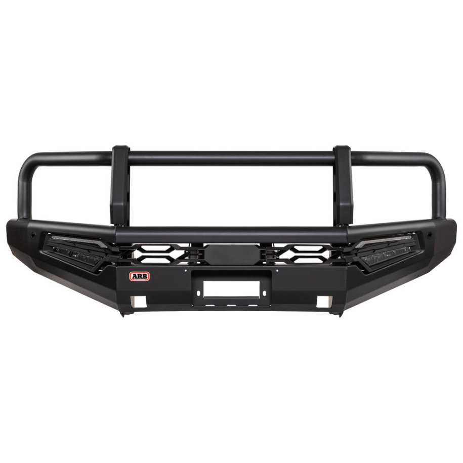 ARB SUMMIT BAR MKIIThe ARB Summit MKII Bar Is now released for the GR Sport variant of the Toyota Hilux and has been designed to accommodate the much wider stance and flares that are standard with the GR-S. Toyotas Intelligent safety technology better known as Safety sense is catered for with radar being relocated to the front of the bar and Panoramic View Monitor is supported by a camera relocation kit. The state-of -the-art Summit MKII Bar takes key components of Its flagship namesake and kicks It up a notch with an ultra-modern design that's constructed to turn heads.Summit MKII has eliminated front buffers and now has robot welds on the front face of the bar to highlight ARB's excellence in sheet metal fabrication. Fog light design has been significantly updated to include a plug and play indicator / clearance light / Daytime Running Light and fog light within one complete unit for an integrated approach to incorporate these requirements on modern vehicles.Please Note:This Summit MKII Bar only suits the GR Sport variant. Also note that large base antenna fitment will clash with OE bonnet protector if fitted. FEATURES: \tVehicle specific design suitable for the MY24 Toyota Hilux GR Sport\tRegistered design of styling components\tDurable steel construction for maximum protection\tIncorporates ARB's renowned multi fold upswept and tapered wing design for optimum strength and approach angle\t30mm radius on wings and centre section\t60.3mm outer frames and centre cross tube\tEngineered, air bag compatible mounting system secures to the chassis via high tensile bolts\tSplit pan design for maximum strength and airflow\tExtensive protection panels on centre and either side\tPressed form top pan and aluminium (powder coated matt black) winch cover panel\tTwin ARB Jack or Hi-Lift jack points located in the lower pan\tTwo aerial brackets located on the centre frame\tOptional Roller Fairlead Cover, Matt Black 3501070\tCamera Relocation kit is included within the fitting kit\tWill accommodate Warn,Bushranger, Smittybilt low mount model electric winches up to 10,000lb, separate winch fitting kit required 3500630\tProvision to accommodate ARB Intensity, Intensity IQ and Solis LED's and a range of Bushranger lights\tIncludes ARB LED Fog light, LED Daytime Running Light and LED indicators and clearance lights\tCompatible with original equipment safety features (refer below)\tBar adds approximately 163mm to the overall length of the vehicle\tApproximate weight of the bar, chassis mounts and fitting kit is 87kg. Approximately 13kg is removed from the vehicle for fitment of the bar\tMetaprep primer for additional corrosion resistance\tFinished in matt black powder coat with the option to colour code to vehicle colour