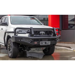 ARB SUMMIT BAR MKIIThe ARB Summit Bar MKII is now released for the ever-popular Toyota Hilux and has been designed to be fully integrated with Toyotas Intelligent safety technology better known as Safety sense. Panoramic View Monitor is support by a camera relocation kit and is an available option for variants that specify the 360-degree view front facing camera. The state-of -the-art Summit Bar MKII takes key components of Its flagship namesake and kicks It up a notch with an ultra-modern design that's constructed to turn heads. Hilux Bars have just gotten better! Summit MKII has eliminated front buffers and now has robot welds on the front face of the bar to highlight ARB's excellence in sheet metal fabrication. Fog light design has been significantly updated to include a plug and play indicator / clearance light / Daytime Running Light and fog light within one complete unit for an integrated approach to incorporate these requirements on modern vehicles.FEATURES:\tVehicle specific design suitable for the MY24 Toyota Hilux\tRegistered design of styling and design components\tDurable steel construction for maximum protection\tIncorporates ARB's renowned multi fold upswept and tapered wing design for optimum strength and approach angle\t30mm radius on wings and centre section\t60.3mm outer frames and centre cross tube\tEngineered, air bag compatible mounting system secures to the chassis via high tensile bolts\tSplit pan design for maximum strength and airflow\tExtensive protection panels on centre and either side\tPressed form top pan and aluminium (powder coated matt black) winch cover panel\tTwin ARB Jack or Hi-Lift jack points located in the lower pan\tTwo antenna brackets located on the centre frame\tOptional Roller Fairlead Cover, Matt Black 3501070\tCamera Relocation kit is included within the fitting kit\tWill accommodate Warn, Magnum, Bushranger, Smittybilt low mount model electric winches up to 10,000lb, separate winch fitting kit required 3501220\tProvision to accommodate ARB Intensity, Intensity IQ and Solis LED's and a range of Bushranger lights\tIncludes ARB LED Fog light, LED Daytime Running Light and LED indicators and clearance lights\tCompatible with original equipment safety features (refer below)\tBar adds approximately 184mm to the overall length of the vehicle\tApproximate weight of the bar, chassis mounts and fitting kit is 87kg. Approximately 13kg is removed from the vehicle for fitment of the bar\tMetaprep primer for additional corrosion resistance\tFinished in matt black powder coat with the option to colour code to vehicle colour