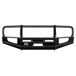 ARB DELUXE BULL BAR ARB's deluxe bull bar selection is our most extensive, with bull bar and winch bar options available for most models.Loaded with features aimed at making remote area travel safer, whilst providing a solid base on which to add other touring essentials such as driving lights, winches and CB antennas, no other bull bar offers the same degree of vehicle integration, protection and functionality.Features you can expect to find throughout the deluxe bull bar range include all steel construction, split pan design to facilitate airflow, fully engineered mounting systems and the ARB pioneered multi-fold upswept and tapered wing design. FEATURES: • Recessed indicators: For protection against branches and road debris.• Recessed Fog light insert: For protection against branches and road debris, fog light is an optional extra.• Steel uprights: The key to its strength, steel uprights attached to the mounting system provide maximum support and strike protection.• Driving light provision: Securely mounting driving lights prevents problems such as excessive movement, a vibrating beam pattern, premature bulb failure and eventual fatiguing of the light bodies.• Aerial brackets: The vast majority of ARB Deluxe bull bars incorporate two aerial brackets welded behind the top cross tube. Custom-fit, clamp-on brackets are also available for additional antenna mounting.• Split pan design: Enhances the strength of the bar, while providing the radiator and engine with increased airflow.• Wing design: The ARB design provides greater strength and maintains an optimum approach angle.• Off road jacking points: Allows for the use of an off road jack for effective recovery.• Mounting system: Specifically engineered to spread impact and winching loads evenly over the vehicle's chassis. This ensures the bull bar functions properly in extreme conditions.