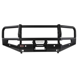 ARB SUMMIT BAR MKIIDesign and DevelopmentDevelopment began with a number of primary areas of the existing Summit Bar platform:• Buffers• Fog light housing• Fitting timeSummit MKII has eliminated front buffers and now has robot welds on the front face of the bar to highlight ARB's excellence in sheet metal fabrication. Fog light design has been significantly updated to include a plug and play indicator / clearance light / Daytime Running Light and fog light within one complete unit for an integrated approach to incorporate these requirements on modern vehicles.FEATURES:• Vehicle specific design• Registered design of styling and design components.• Durable steel construction for maximum protection.• Incorporates ARB's renowned multi fold upswept and tapered wing design for optimum strength and approachangle.• 30mm radius on wings and centre section.• 60.3mm outer frames and centre cross tube.• Engineered, air bag compatible mounting system secures to the chassis via high tensile bolts.• Split pan design for maximum strength and airflow.• Extensive protection panels on centre and either side.• Pressed form top pan and aluminium (powder coated matt black) winch cover panel.• Twin ARB Jack or Hi-Lift jack points located in the lower pan• Two aerial brackets located on the outer frames.• Will accommodate Warn, Magnum, Bushranger, Smittybilt low mount model electric winches up to 12,000lb.• Provision to accommodate ARB Intensity and Solis LED's and a range of Bushranger lights.• Includes ARB LED Fog light, LED Daytime Running Light and LED indicators and clearance lights• Bar adds approximately 174mm to the overall length of the vehicle.• Approximate weight of the bar, chassis mounts and fitting kit is 99kg. Approximately 15kg is removed from thevehicle for fitment of the bar.• Metaprep primer for additional corrosion resistance.• Finished in matt black powder coat with the option to colour code to vehicle colour.