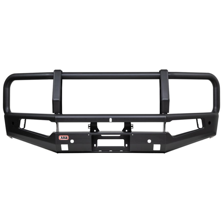 ARB SUMMIT BAR MKIIDesign and DevelopmentDevelopment began with a number of primary areas of the existing Summit Bar platform:• Buffers• Fog light housing• Fitting timeSummit MKII has eliminated front buffers and now has robot welds on the front face of the bar to highlight ARB's excellence in sheet metal fabrication. Fog light design has been significantly updated to include a plug and play indicator / clearance light / Daytime Running Light and fog light within one complete unit for an integrated approach to incorporate these requirements on modern vehicles.FEATURES:• Vehicle specific design• Registered design of styling and design components.• Durable steel construction for maximum protection.• Incorporates ARB's renowned multi fold upswept and tapered wing design for optimum strength and approach angle.• 30mm radius on wings and centre section.• 60.3mm outer frames and centre cross tube.• Engineered, air bag compatible mounting system secures to the chassis via high tensile bolts.• Split pan design for maximum strength and airflow.• Extensive protection panels on centre and either side.• Pressed form top pan and aluminium (powder coated matt black) winch cover panel.• Twin ARB Jack or Hi-Lift jack points located in the lower pan• Two aerial brackets located on the outer frames.• Will accommodate Warn, Magnum, Bushranger, Smittybilt low mount model electric winches up to 10,000lb.• Provision to accommodate ARB Intensity and Solis LED's and a range of Bushranger lights.• Includes ARB LED Fog light, LED Daytime Running Light and LED indicators and clearance lights• Bar adds approximately 174mm to the overall length of the vehicle.• Approximate weight of the bar, chassis mounts and fitting kit is 79kg. Approximately 17kg is removed from thevehicle for fitment of the bar.• Metaprep primer for additional corrosion resistance.• Finished in matt black powder coat with the option to colour code to vehicle colour.