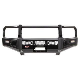 Summit Bull Bar NO. 1 BEST SELLER, AS TOUGH AS IT LOOKS SUITABLE FOR• Modern 4WDs• Owners who want the best• Serious 4WD users• Rough terrain• Around Australia driving• Maximum protection STRONGER, TOUGHER, FEATURE PACKED BAR PROVIDES EXTRA PROTECTIONOPTION TO COLOUR CODE TO SUIT YOUR VEHICLEBAR DESIGNED FOR MODERN DAY 4WDSMOUNTING AND JACKING POINTS TO FIT MULTIPLE ACCESSORIESCOMPATIBLE WITH VEHICLE'S SAFETY FEATURESFOG LIGHTS (OPTIONAL EXTRA) PROVIDE WIDE SPREAD ÔÇô EXTRA PROTECTION IN INCLEMENT CONDITIONSEASY, MORE FLEXIBLE WINCH ACCESSBUILT TOUGH TO WITHSTAND THE HARSHEST OF CONDITIONS LET'S TAKE A CLOSER LOOK• Bar design: every Summit bar is specifically designed to complement the shape and features of the vehicle make and model.• Wing design: The ARB renowned multi-fold upswept and tapered wing design for superior strength and maintains an optimum offset approach angle.• Wider edge radius: A 30mm wing and centre section edge radius offers increased strength while complementing modern vehicle design. • Off road jacking points: Allows for the use of an off road jack for effective recovery.• Winch compatibility: The ARB Summit bull bar has the option of fitting a winch and is designed and tested to endure the rigours of maximum recovery stress.• Steel uprights: The key to its strength, steel uprights attached to the mounting system provide maximum support and strike protection.• Larger tubing: 60.3mm steel outer hoops (mandrel bent) and central tube provides increased frontal protection and greater visual styling.• Press-formed top pan and cover panel: Stronger centre pan with smooth, continuous edges. A press formed aluminium winch cover panel finishes off the bar for when a winch is not installed.• Mounting system: Specifically engineered to spread impact and winching loads evenly over the vehicle's chassis. This ensures the bull bar functions properly in extreme conditions.• Aerial brackets: Two aerial brackets welded behind the top cross tube.• Driving light provision: Laser cut profiles ready to securely mount driving lights, prevents problems such as excessive movement, a vibrating beam pattern, premature bulb failure and eventual fatiguing of the light bodies.• Split pan design: Enhances the strength of the bar, while providing the radiator and engine with additional airflow. Also facilitates winch access and operation.• Safety first: ARB bars are compatible with vehicle's OE safety systems including airbags, parking sensors and collision avoidance.• Optional fog lights: Perfect for driving in inclement weather, these fog lights provide a broad spread of light to illuminate the road ahead.• LED indicators and clearance lights: Fully sealed and water-resistant LEDs provide increased service life.