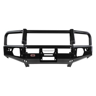Summit Bull Bar NO. 1 BEST SELLER, AS TOUGH AS IT LOOKS SUITABLE FOR• Modern 4WDs• Owners who want the best• Serious 4WD users• Rough terrain• Around Australia driving• Maximum protection STRONGER, TOUGHER, FEATURE PACKED BAR PROVIDES EXTRA PROTECTIONOPTION TO COLOUR CODE TO SUIT YOUR VEHICLEBAR DESIGNED FOR MODERN DAY 4WDSMOUNTING AND JACKING POINTS TO FIT MULTIPLE ACCESSORIESCOMPATIBLE WITH VEHICLE'S SAFETY FEATURESFOG LIGHTS (OPTIONAL EXTRA) PROVIDE WIDE SPREAD ÔÇô EXTRA PROTECTION IN INCLEMENT CONDITIONSEASY, MORE FLEXIBLE WINCH ACCESSBUILT TOUGH TO WITHSTAND THE HARSHEST OF CONDITIONS LET'S TAKE A CLOSER LOOK• Bar design: every Summit bar is specifically designed to complement the shape and features of the vehicle make and model.• Wing design: The ARB renowned multi-fold upswept and tapered wing design for superior strength and maintains an optimum offset approach angle.• Wider edge radius: A 30mm wing and centre section edge radius offers increased strength while complementing modern vehicle design. • Off road jacking points: Allows for the use of an off road jack for effective recovery.• Winch compatibility: The ARB Summit bull bar has the option of fitting a winch and is designed and tested to endure the rigours of maximum recovery stress.• Steel uprights: The key to its strength, steel uprights attached to the mounting system provide maximum support and strike protection.• Larger tubing: 60.3mm steel outer hoops (mandrel bent) and central tube provides increased frontal protection and greater visual styling.• Press-formed top pan and cover panel: Stronger centre pan with smooth, continuous edges. A press formed aluminium winch cover panel finishes off the bar for when a winch is not installed.• Mounting system: Specifically engineered to spread impact and winching loads evenly over the vehicle's chassis. This ensures the bull bar functions properly in extreme conditions.• Aerial brackets: Two aerial brackets welded behind the top cross tube.• Driving light provision: Laser cut profiles ready to securely mount driving lights, prevents problems such as excessive movement, a vibrating beam pattern, premature bulb failure and eventual fatiguing of the light bodies.• Split pan design: Enhances the strength of the bar, while providing the radiator and engine with additional airflow. Also facilitates winch access and operation.• Safety first: ARB bars are compatible with vehicle's OE safety systems including airbags, parking sensors and collision avoidance.• Optional fog lights: Perfect for driving in inclement weather, these fog lights provide a broad spread of light to illuminate the road ahead.• LED indicators and clearance lights: Fully sealed and water-resistant LEDs provide increased service life.