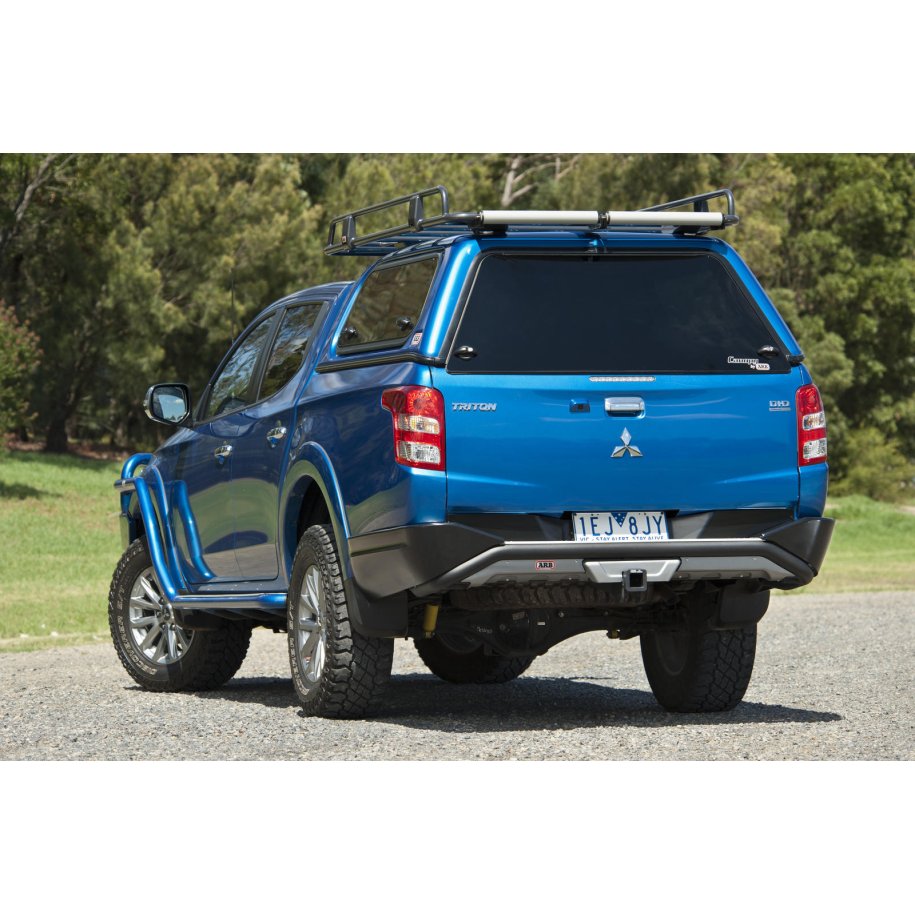 Summit Rear Step Tow BarThis modern, stylised rear step tow bar provides protection, easy access to the vehicle and maximum towing capacity. The Summit rear step tow bar features a textured powder-coated 60.3mm tubular frame.As rear tub corners on utility vehicles are vulnerable to damage, replaceable steel wing panels mount to the chassis and rear step towbar assembly for optimum strength and rigidity. The wing panels come standard in a black powder-coat finish but can be colour-coded (optional extra) for additional vehicle integration. PROTECTION & STYLING CHARACTERISTICS:\tVehicle specific wing design.\tRegistered design of styling and design components.\t3.5tonne, Class 4, 50mm hitch with gusset supplied as standard.\t60.3mm x 2.6mm ERW tubing used for main frame. Tubing finished in textured black powder coat.\tTwo tow chain fixture points.\tSeparate bolt on wings supplied in a satin black powder coat. Fitment requires 70mm access holes to be drilled through the lower section of the vehicle tub.\tCentre lift up panel finished in a light grey powder coat.\t\t\t Provision for mounting ARB trailer plug wiring.\t\t Provision for ARB air compressor outlet.\t\t\tProvision for mounting ARB Trailer Camera wiring (part # 10600030).\tProvision for 50amp Anderson plug.\tAnodised silver extrusion featuring ridges for grip.\tMoulded license plate bezel and OE license plate light.\tBeaver panel included in satin black powder coat.\tFlip down number plate bracket to allow access to the factory spare wheel mechanism.\tOff-Road jack points on wings and under the 60.3mm tube.\tDesigned to accept Bushranger Recovery Hitch part # 58X22/A.\tZinc rich primer for additional corrosion resistance.