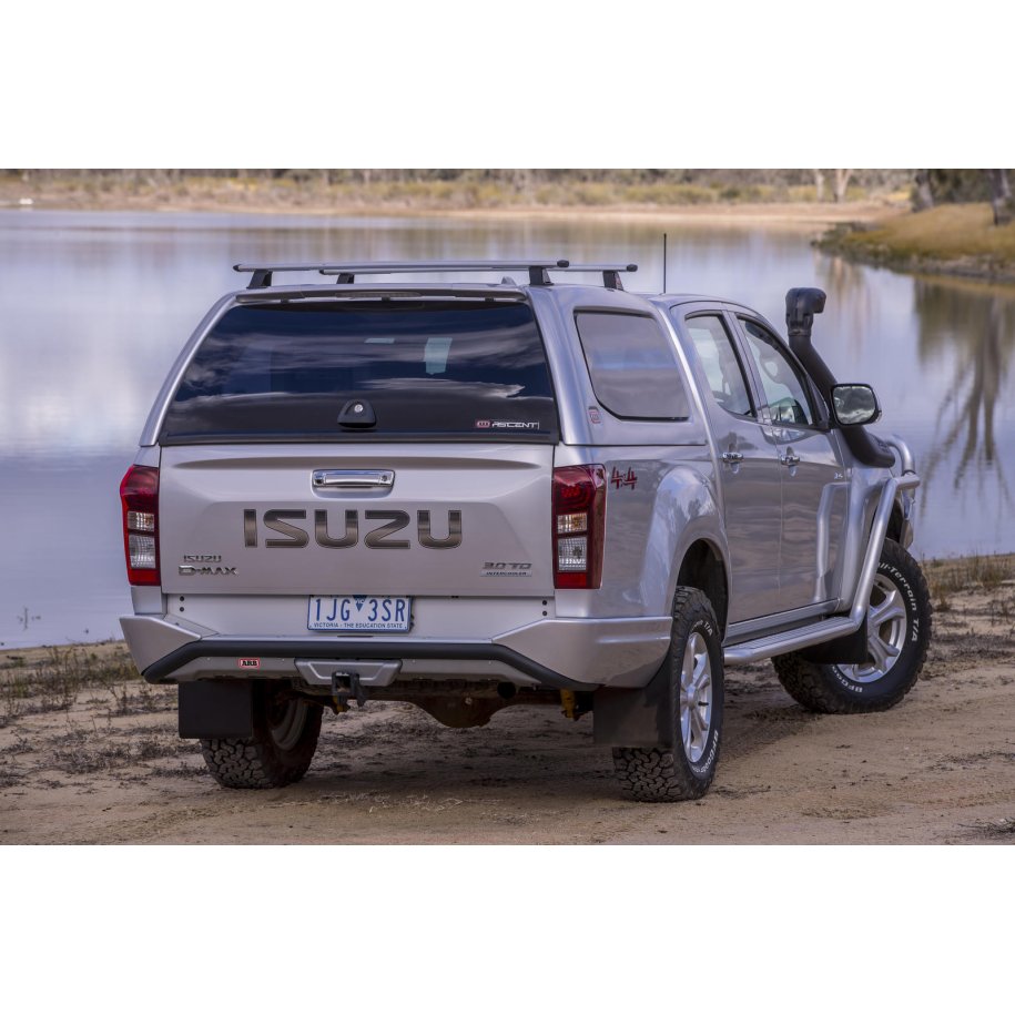 Summit Rear Step Tow BarThis modern, stylised rear step tow bar provides protection, easy access to the vehicle and maximum towing capacity. The Summit rear step tow bar features a textured powder-coated 60.3mm tubular frame.As rear tub corners on utility vehicles are vulnerable to damage, replaceable steel wing panels mount to the chassis and rear step towbar assembly for optimum strength and rigidity. The wing panels come standard in a black powder-coat finish but can be colour-coded (optional extra) for additional vehicle integration. PROTECTION & STYLING CHARACTERISTICS:\tVehicle specific wing design.\tRegistered design of styling and design components.\t3.5tonne, Class 4, 50mm hitch with gusset supplied as standard.\t60.3mm x 2.6mm ERW tubing used for main frame. Tubing finished in textured black powder coat.\tTwo tow chain fixture points.\tSeparate bolt on wings supplied in a satin black powder coat. Fitment requires 70mm access holes to be drilled through the lower section of the vehicle tub.\tCentre lift up panel finished in a light grey powder coat.\t\t\t Provision for mounting ARB trailer plug wiring.\t\t Provision for ARB air compressor outlet.\t\t\tProvision for mounting ARB Trailer Camera wiring (part # 10600030).\tProvision for 50amp Anderson plug.\tAnodised silver extrusion featuring ridges for grip.\tMoulded license plate bezel and LED license plate light.\tBeaver panel included in satin black powder coat.\tFlip down number plate bracket to allow access to the factory spare wheel mechanism.\tOff-Road jack points on wings and under the 60.3mm tube.\tDesigned to accept Bushranger Recovery Hitch part # 58X22/A.\tZinc rich primer for additional corrosion resistance.
