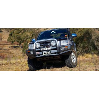 Deluxe Sahara Bar ALL THE FUNCTION AND STRENGTH OF THE DELUXE BULL BAR - WITH A DIFFERENT LOOK ABOVE SUITABLE FOR• Older model 4WDs• Vehicles with multiple accessories• Drivers who want protection and style AVAILABLE WITH OR WITHOUT POLISHED CENTRE TUBE PRODUCT SPECIFICATION• Winch compatible: The ARB Deluxe Sahara bull bar features the option of fitting a winch, and is designed and tested to endure and exceed loads increased by the use of a snatch block.• Recessed indicators: For protection against branches and road debris.• Recessed Fog light insert: For protection against branches and road debris, fog light is an optional extra.