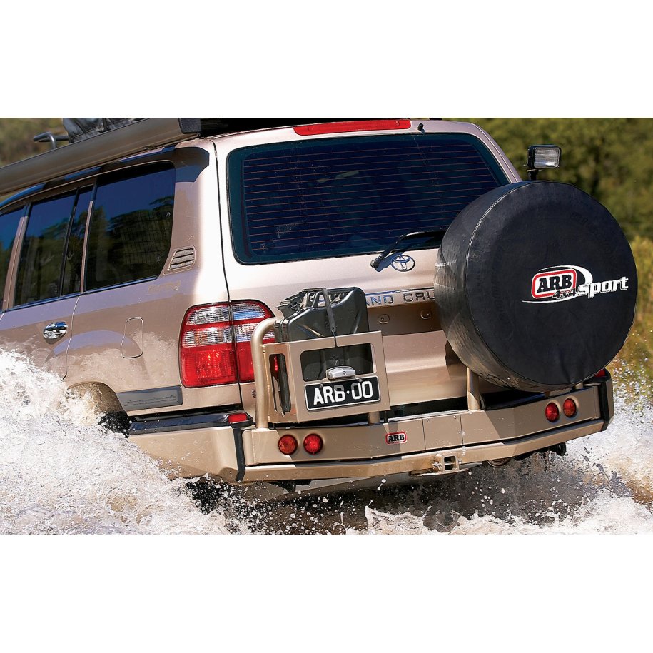 ARB REAR BAR AND WHEEL CARRIERARB's range of rear bars, incorporating wheel carriers and jerry can holders, provide additional functionality while delivering high quality vehicle protection.4WDs with the spare tyre mounted on the back door can suffer from unnecessary door assembly stress, while a spare wheel located underneath a vehicle can be difficult to access, be more prone to damage and may affect ground clearance when driving off road.