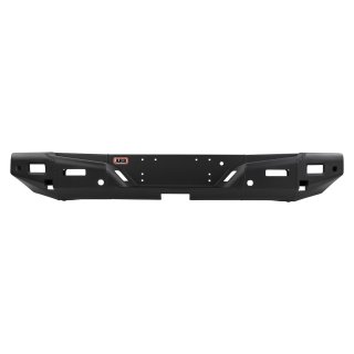 ARB REAR BAR AND WHEEL CARRIERARB's range of rear bars, incorporating wheel carriers and jerry can holders, provide additional functionality while delivering high quality vehicle protection.4WDs with the spare tyre mounted on the back door can suffer from unnecessary door assembly stress, while a spare wheel located underneath a vehicle can be difficult to access, be more prone to damage and may affect ground clearance when driving off road. Both of these mounting methods can also prove unsuitable if a larger tyre size is sought.An ARB rear bar addresses all of these issues, relocating the spare tyre onto the bumper assembly via a swing out carrier.KEY FEATURES\tWheel or jerry can carriers can be optioned on either side of the rear bar on most vehicles\tA single carrier can be fitted, or the rear bar can be installed without any carriers at all. Neat insert panels are used in this instance\tTwin 33ÔÇ? or a single 35ÔÇ? tyre can be accommodated on most vehicles\tCarriers are mounted via dual shear pivots for maximum strength\tSpare tyre is secured to the stud plate with a lock nut with the provision to fit a padlock to secure the stud plate to the carrier\tMulti fit spare wheel stud system provides flexibility for alternate rim selection\tWing sections can be removed and replaced if they sustain damage\tIncorporates heavy duty towing system, or integration with original equipment tow point on some models\tDual, laminated towing points and Off-road jacking points\tExtruded alloy step section\tSupplied in a durable powder coat finish with optional colour coding available\tProvision to mount an optional HF aerial bracket and camp light* Certain ARB rear bar models may not incorporate all of the above features