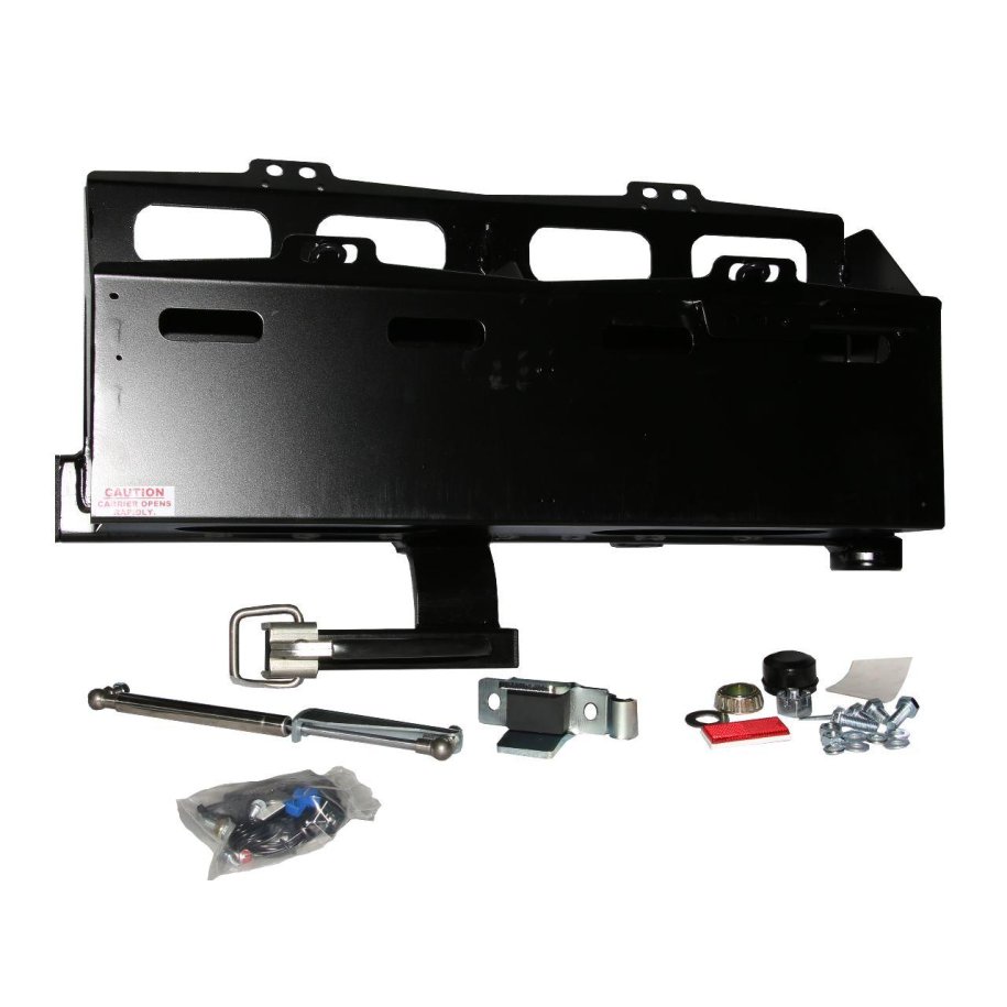 DOUBLE JERRY CAN HOLDERThe Right Double Jerry Can Holder is designed to carry up to 40L with two jerry cans. It includes our unique over centre locking mechanism which continues to work in dust and mud. The Jerry Can Holder Carrier utilises our high quality and proven gas struts and signature rubber dipped handles.FEATURES:\tHolds 2 x 20L Jerry cans (40L total)\tInstalled into a Kaymar Rear Bar\tOver centre locking mechanism\tHigh quality and proven gas struts\tSignature rubber dipped handles