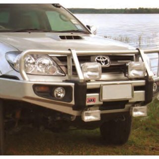 ARB DELUXE BULL BAR ARB's deluxe bull bar selection is our most extensive, with bull bar and winch bar options available for most models.Loaded with features aimed at making remote area travel safer, whilst providing a solid base on which to add other touring essentials such as driving lights, winches and CB antennas, no other bull bar offers the same degree of vehicle integration, protection and functionality.Features you can expect to find throughout the deluxe bull bar range include all steel construction, split pan design to facilitate airflow, fully engineered mounting systems and the ARB pioneered multi-fold upswept and tapered wing design.FEATURES: • Recessed indicators: For protection against branches and road debris.