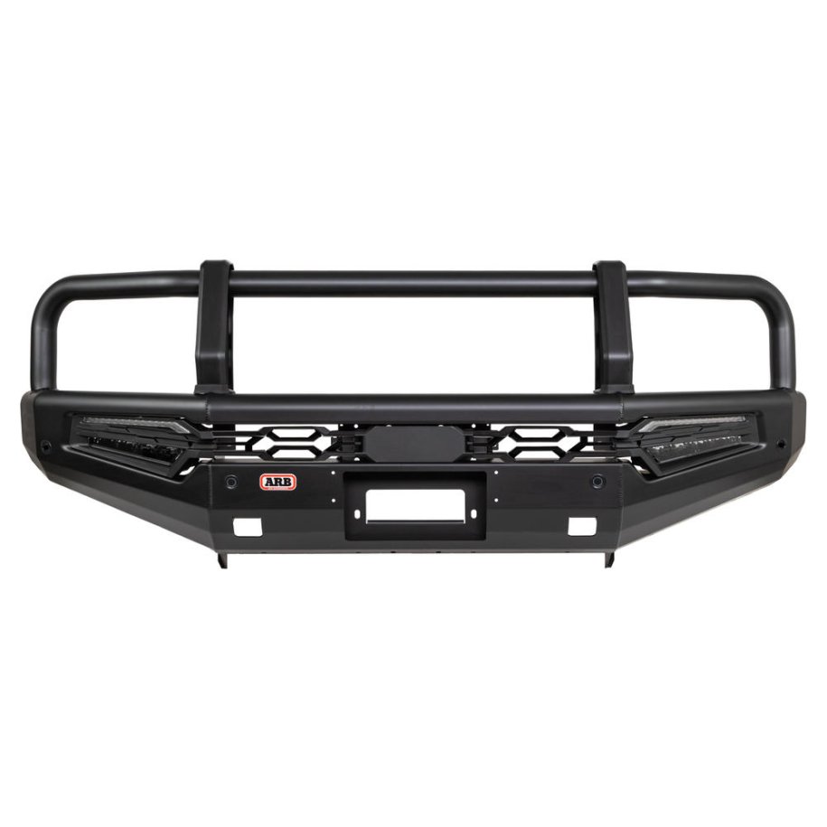 ARB SUMMIT BAR MKII Design and DevelopmentDevelopment began with a number of primary areas of the existing Summit Bar platform:• Buffers• Fog light housing• Fitting timeSummit MKII has eliminated front buffers and now has robot welds on the front face of the bar to highlight ARB'sexcellence in sheet metal fabrication. Fog light design has been significantly updated to include a plug and playindicator / clearance light / Daytime Running Light and fog light within one complete unit for an integrated approachto incorporate these requirements on modern vehicles.FEATURES:• Vehicle specific design• Registered design of styling and design components.• Durable steel construction for maximum protection.• Incorporates ARB's renowned multi fold upswept and tapered wing design for optimum strength and approachangle.• 30mm radius on wings and centre section.• 60.3mm outer frames and centre cross tube.• Engineered, air bag compatible mounting system secures to the chassis via high tensile bolts.• Split pan design for maximum strength and airflow.• Extensive protection panels on centre and either side.• Pressed form top pan and aluminium (powder coated matt black) winch cover panel.• Twin ARB Jack or Hi-Lift jack points located in the lower pan• Two aerial brackets located on the outer frames.• Will accommodate Warn, Magnum, Bushranger, Smittybilt low mount model electric winches up to 10,000lb.• Provision to accommodate ARB Intensity and Solis LED's and a range of Bushranger lights.• Includes ARB LED Fog light, LED Daytime Running Light and LED indicators and clearance lights• Bar adds approximately 174mm to the overall length of the vehicle.• Approximate weight of the bar, chassis mounts and fitting kit is 99kg. Approximately 15kg is removed from thevehicle for fitment of the bar.• Metaprep primer for additional corrosion resistance.• Finished in matt black powder coat with the option to colour code to vehicle colour.