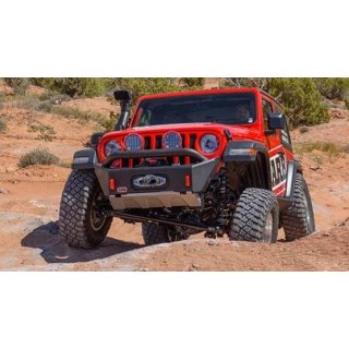 ARB BONDI STUBBY BUMPER With the release of the new Jeep Wrangler JL, the engineers at ARB were excited to have the opportunity to design a whole new bumper to suit. The new Bondi Stubby bumper utilizes a single-piece press formed centre pan, pulse welded uprights and upswept outer wings providing the best protection possible while still allowing maximum clearance for aftermarket wheels and tires.Significant protection and aesthetic appeal have been at the forefront of the design of this bumper, with an integrated bash plate along the base and a low slung forward-facing 3-inch tube hoop perched along the top to protect the most vulnerable vehicle components.FEATURES: \tVehicle specific design to complement the Wrangler JL\tDurable steel construction for maximum protection\tSingle-piece press formed centre pan\tBash plate under panel included for added protection, finished in vintage silver\tTwin high lift jack points in the bar perfect for use with ARB Jack or a Hi-Lift jack\tTwo aerial or driving light brackets located on the top of the centre tube\tWill accommodate Warn, Bushranger and Smittybilt low mount model electric winches up to 10,000lbs\tProvision to accommodate ARB Intensity LED's and a range of Bushranger lights\tTwo integrated chassis-mounted rated recovery points, powder-coated red for maximum visibility\tBumper adds approximately 34mm to the overall length of the vehicle\tApproximate weight of the bar, chassis mounts and fitting kit is 50kg\tApproximately 19kg is removed from the vehicle for fitment of the bar\tZinc rich primer for additional corrosion resistance, followed by a textured Integrit black powder coat finish\tChassis mounts manufactured with 5mm sheet steel\tSeparate winch cradle manufactured from combination of 4mm and 5mm sheet steel\t76.1mm main tube\tPan manufactured from 3mm sheet steel including press forms and multi folds for added structural integrity\tUprights manufactured from laser-cut 4mm sheet steel